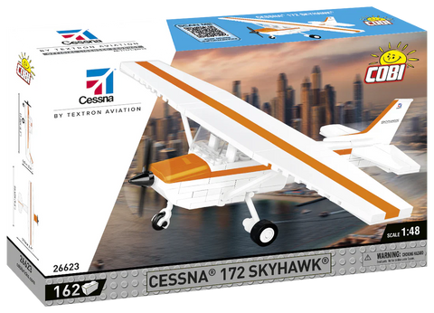 We designed the block model with attention to detail in a scale of 1:48 using 160 elements. Its size fits perfectly into the collection of our modern aircraft. The model has rotating wheels and a movable propeller. There are also prints on the blocks, no stickers here! Especially for this set we designed a new block shape - a vertical stabilizer - so that our model imitates its inspiration as realistically as possible. Building the set is simple and hassle-free thanks to the clear paper instructions and the block Cessna 172 Skyhawk is a must-have model for civil aviation enthusiasts. Take your passion home and build it!