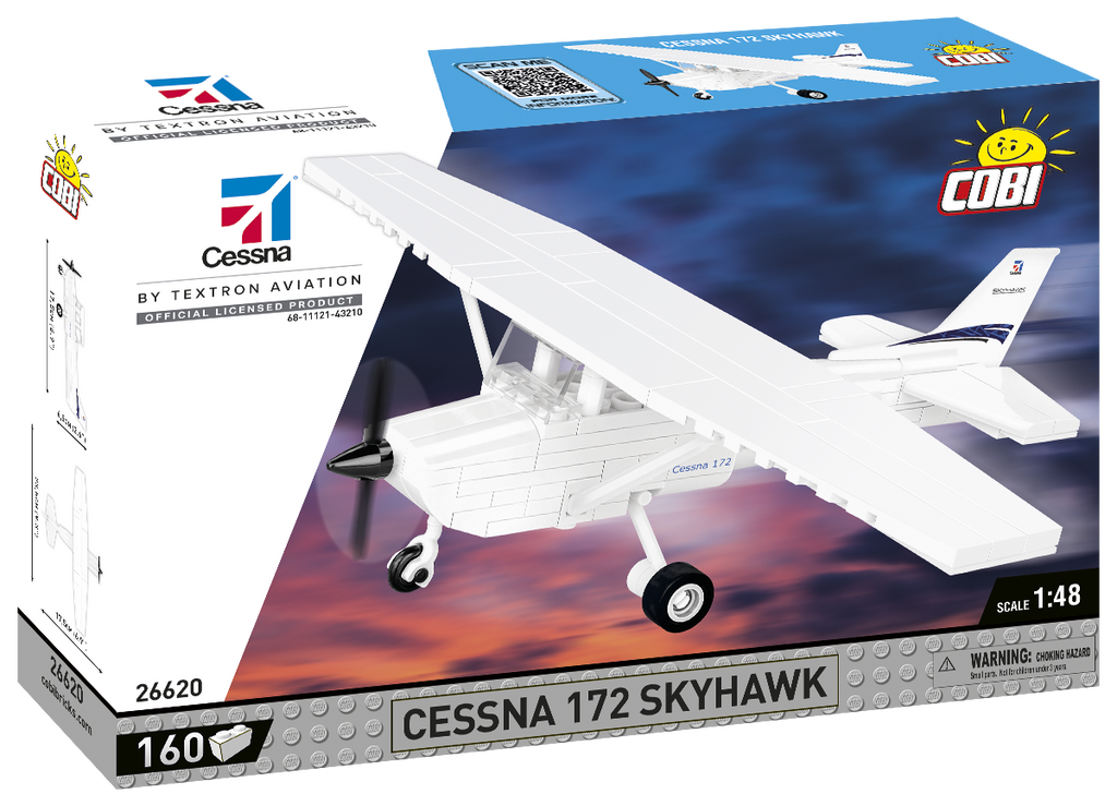 We designed the block model with attention to detail in a scale of 1:48 using 160 elements. Its size fits perfectly into the collection of our modern aircraft. The model has rotating wheels and a movable propeller. There are also prints on the blocks, no stickers here! Especially for this set we designed a new block shape - a vertical stabilizer - so that our model imitates its inspiration as realistically as possible. Building the set is simple and hassle-free thanks to the clear paper instructions and the block Cessna 172 Skyhawk is a must-have model for civil aviation enthusiasts. Take your passion home and build it!